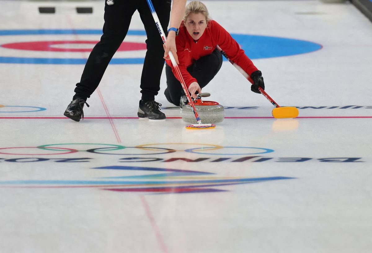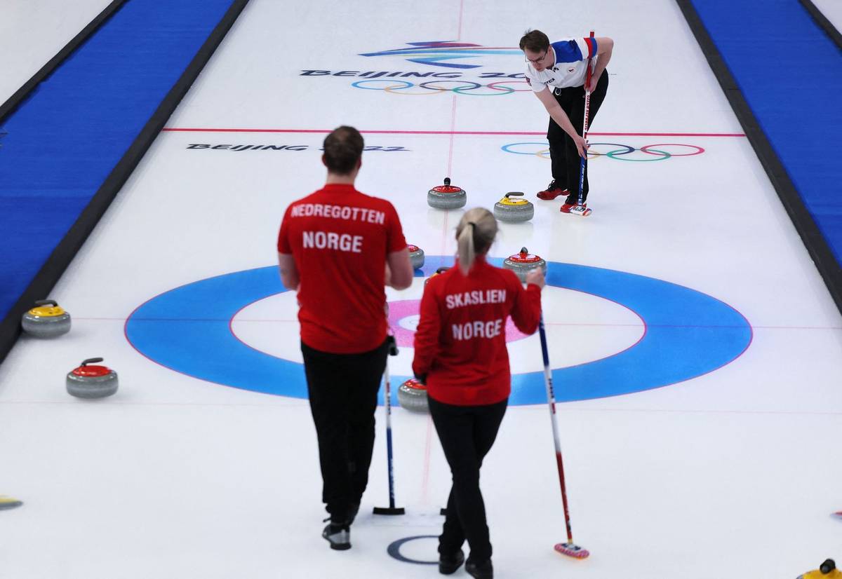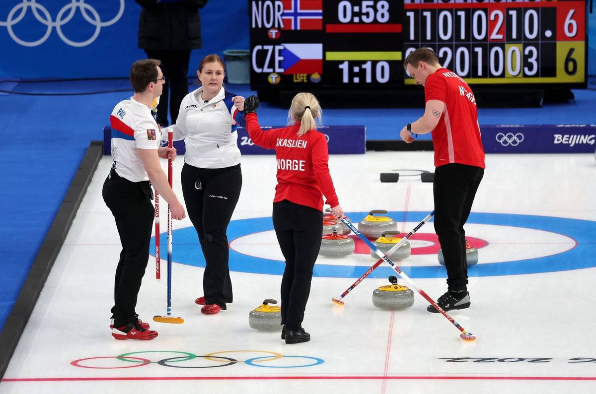 Zuzana Paulová, Tomáš Paul a norský pár v zápase smíšených dvojic v curlingu Česko - Norsko na ZOH 2022