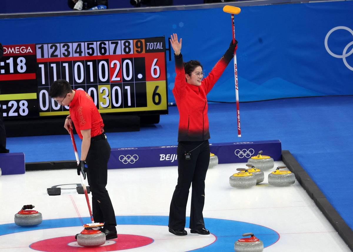 Do prodloužení dostali svůj zápas také domácí hráči. Číňané nakonec porazili Švýcarsko také 7:6 po dodatečném endu.