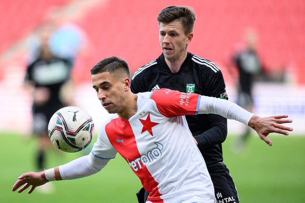 Aiham Ousou ze Slavie Praha se rozčiluje během utkání s MFK Karviná.