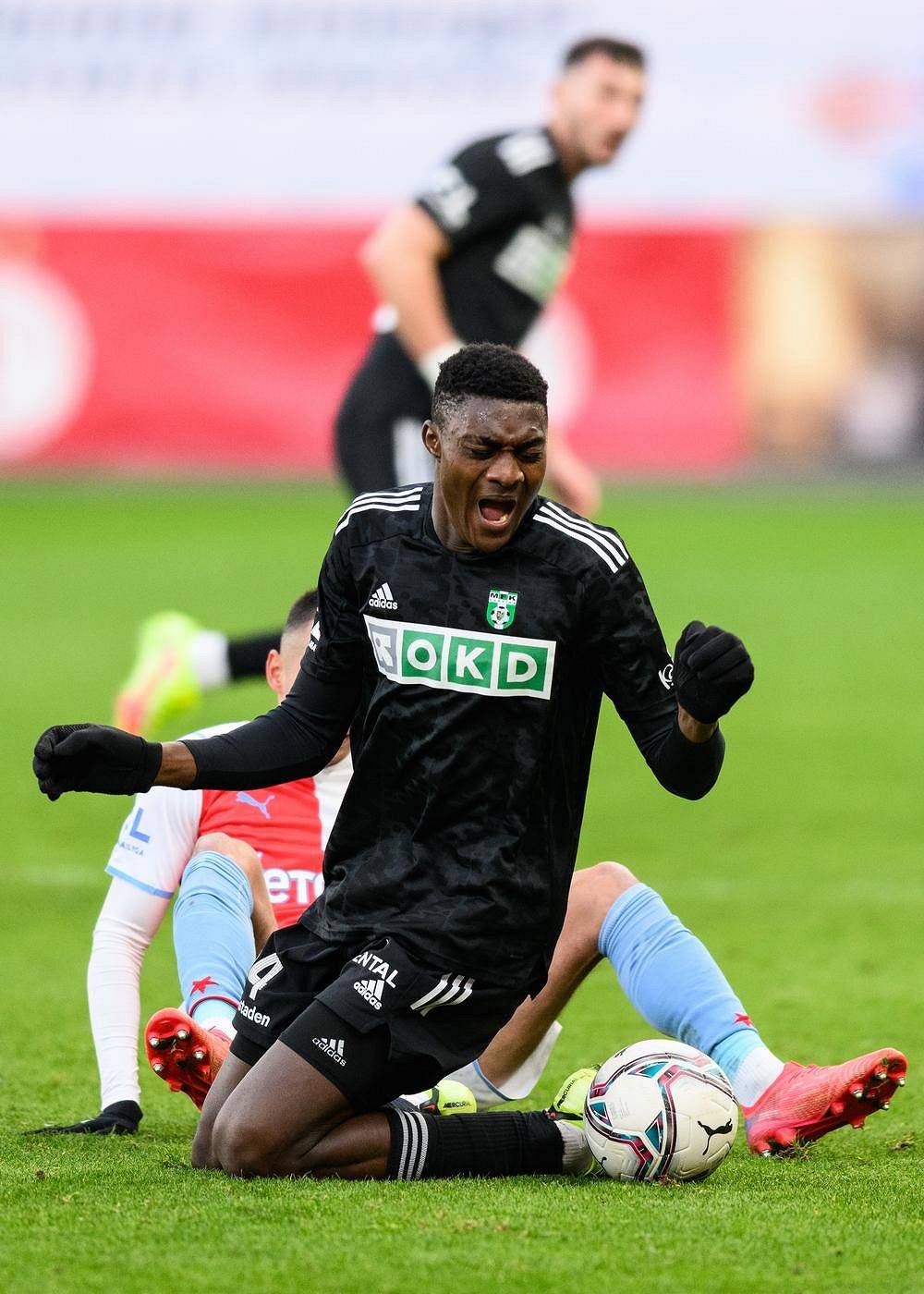 Rafiu Adekunle Durosinmi z Karviné během utkání na Slavii.
