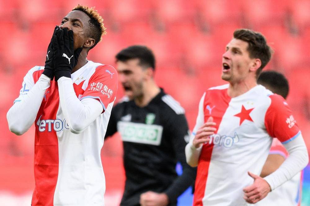 Peter Olayinka ze Slavie Praha neproměnil penaltu.