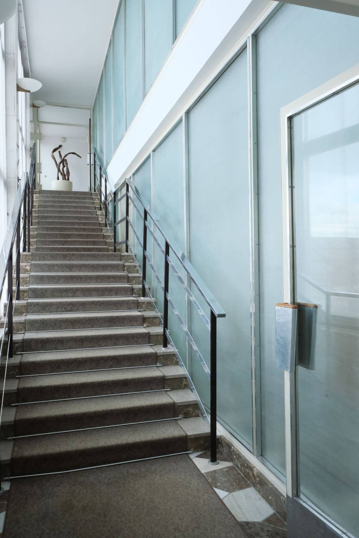 Hotelem dodnes vede postranní prosklená šachta.