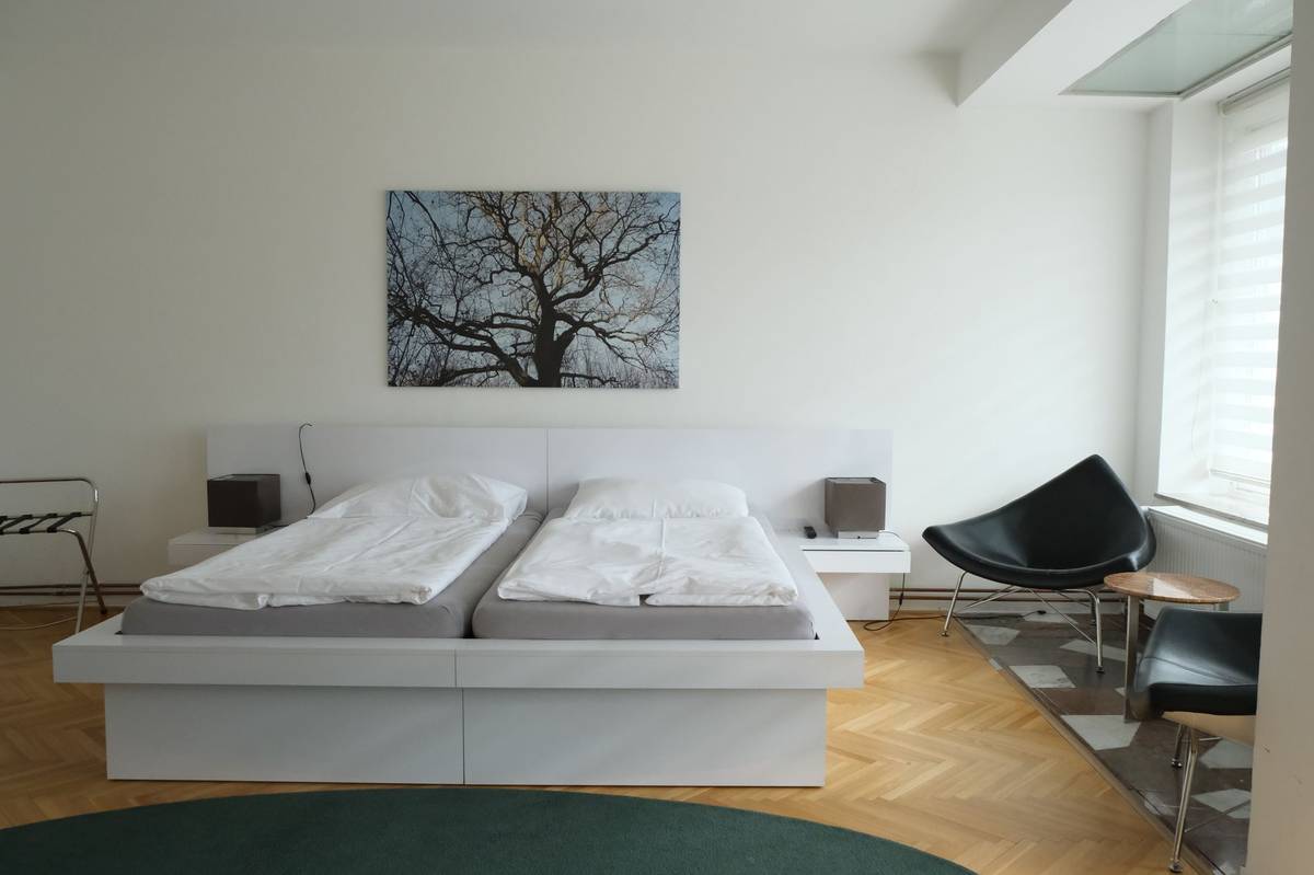 Apartmány byly velkorysé, dvoulůžkové nebo jednolůžkové s přístupem na balkon.