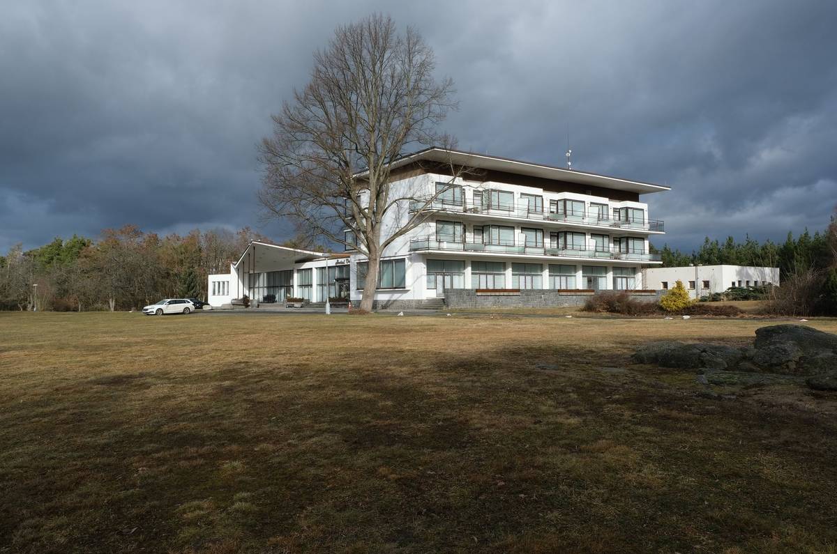 Pozemky měly 470 hektarů a kromě modernistického hotelu na nich stálo celkem patnáct vil, k nim se ale dostaneme později. Resort byl od prvopočátku přísně střežen, obehnán ploty s ostnatými dráty a na mapách zůstávala jen zelená skvrna, aby ani obyvatelé z nedaleké obce nevěděli, co se na pozemcích uprostřed lesa přesně nachází. O pátcích kolem nich projížděla auta s pražskou značkou a mizela na cestách za červenobílými závorami.