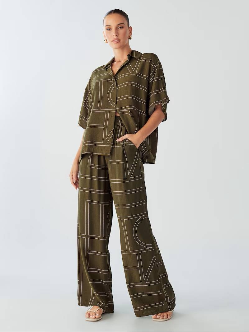 Halenka Diana olivová, 1912 Kč, zvonové kalhoty, 1912 Kč, oboje Willa (Aboutyou)