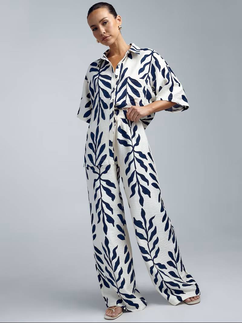 Košile s abstraktním potiskem, 440 Kč, kalhoty, 310 Kč, Primark