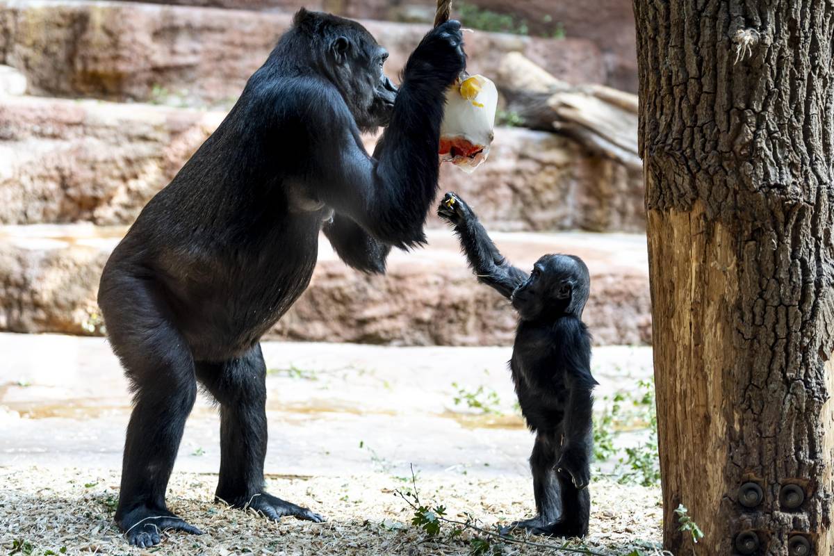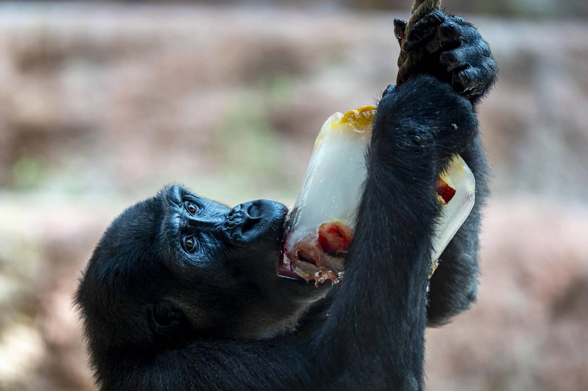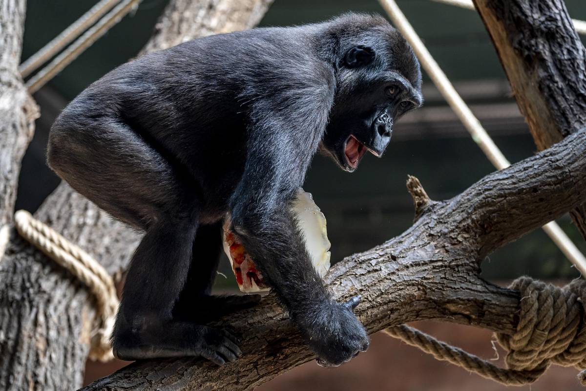 Gorily nížinné si pochutnaly na zamraženém ovoci.