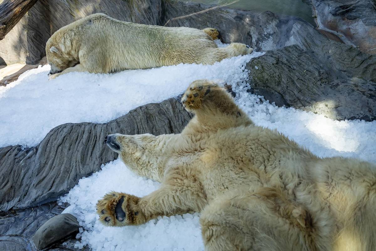 Medvědi si ledovou nadílku mohli užít už po deváté hodině.
