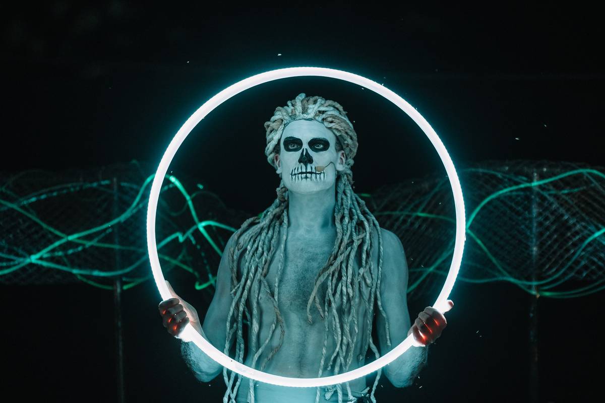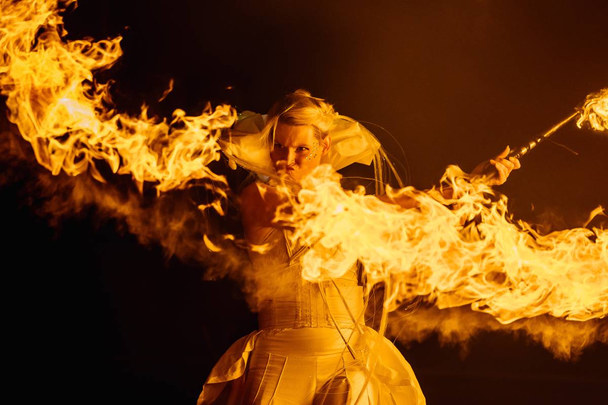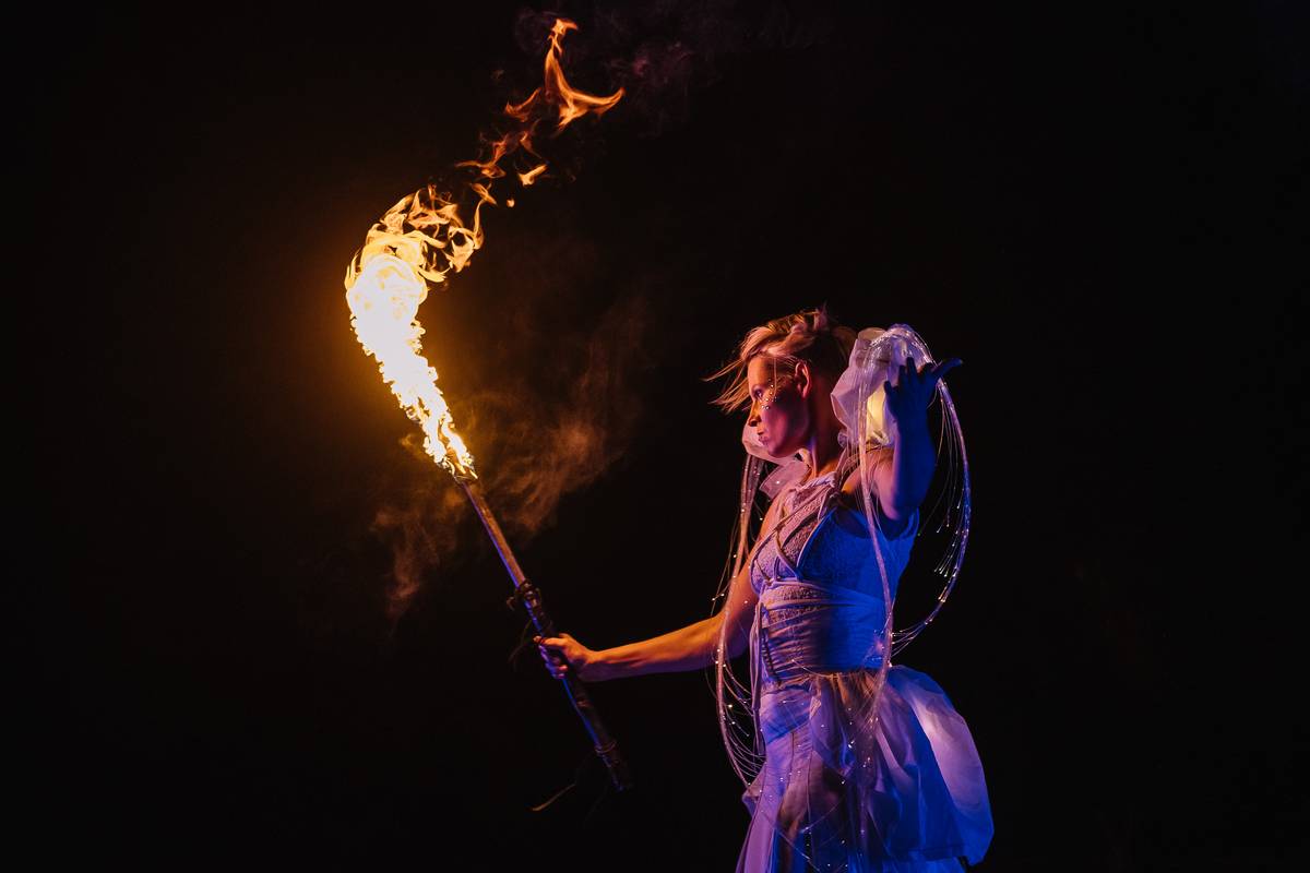 Roli v něm hrál účinkující na chůdách, světelné a ohnivé rekvizity či jiskry. Vše doplňovala elektronická hudba.