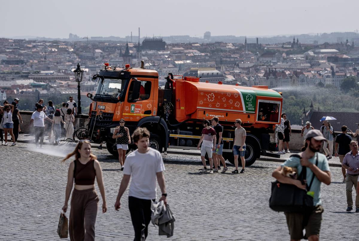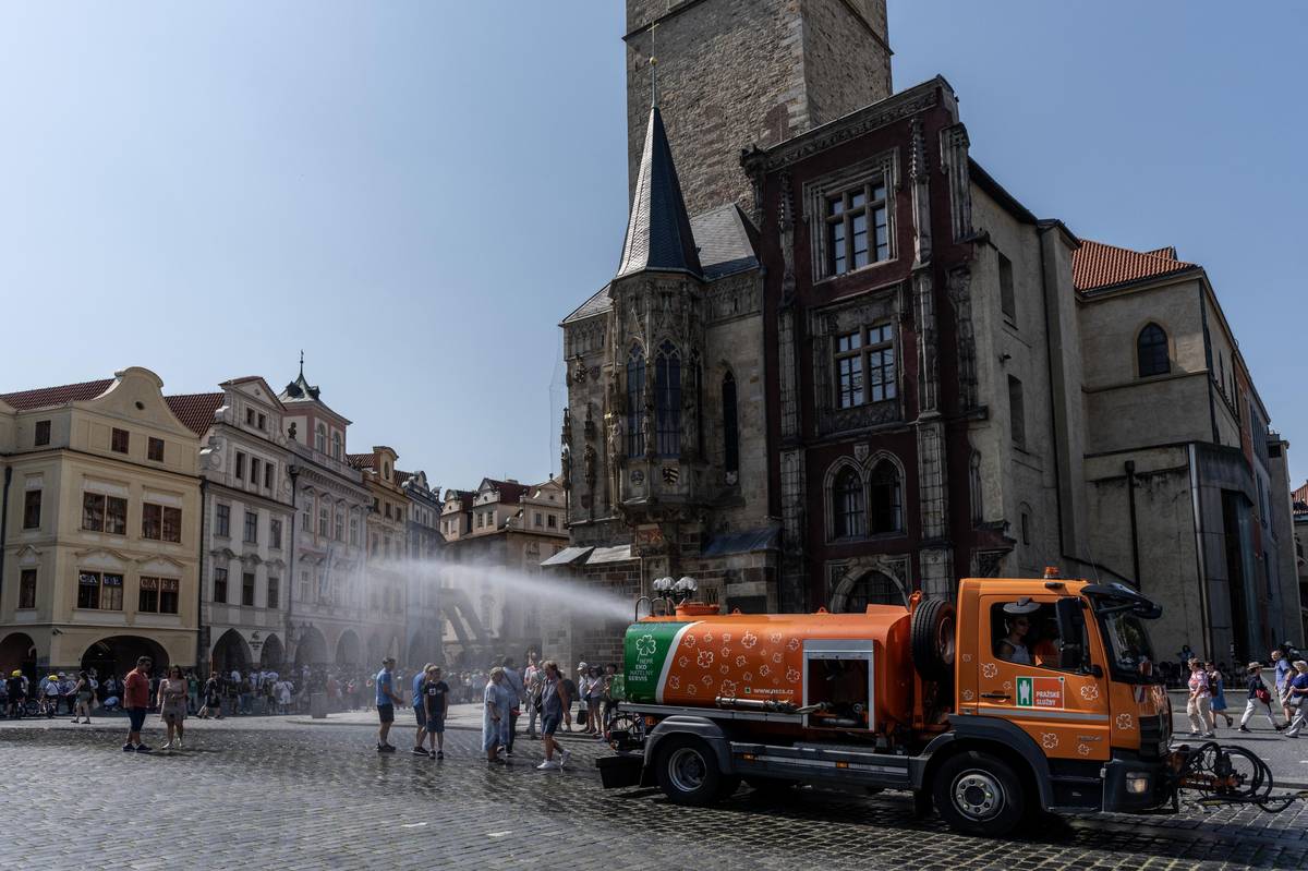 Speciální vozy kropí a mlží komunikace ve čtyřech cyklech napříč všemi městskými částmi od 10:00 do 18:00.