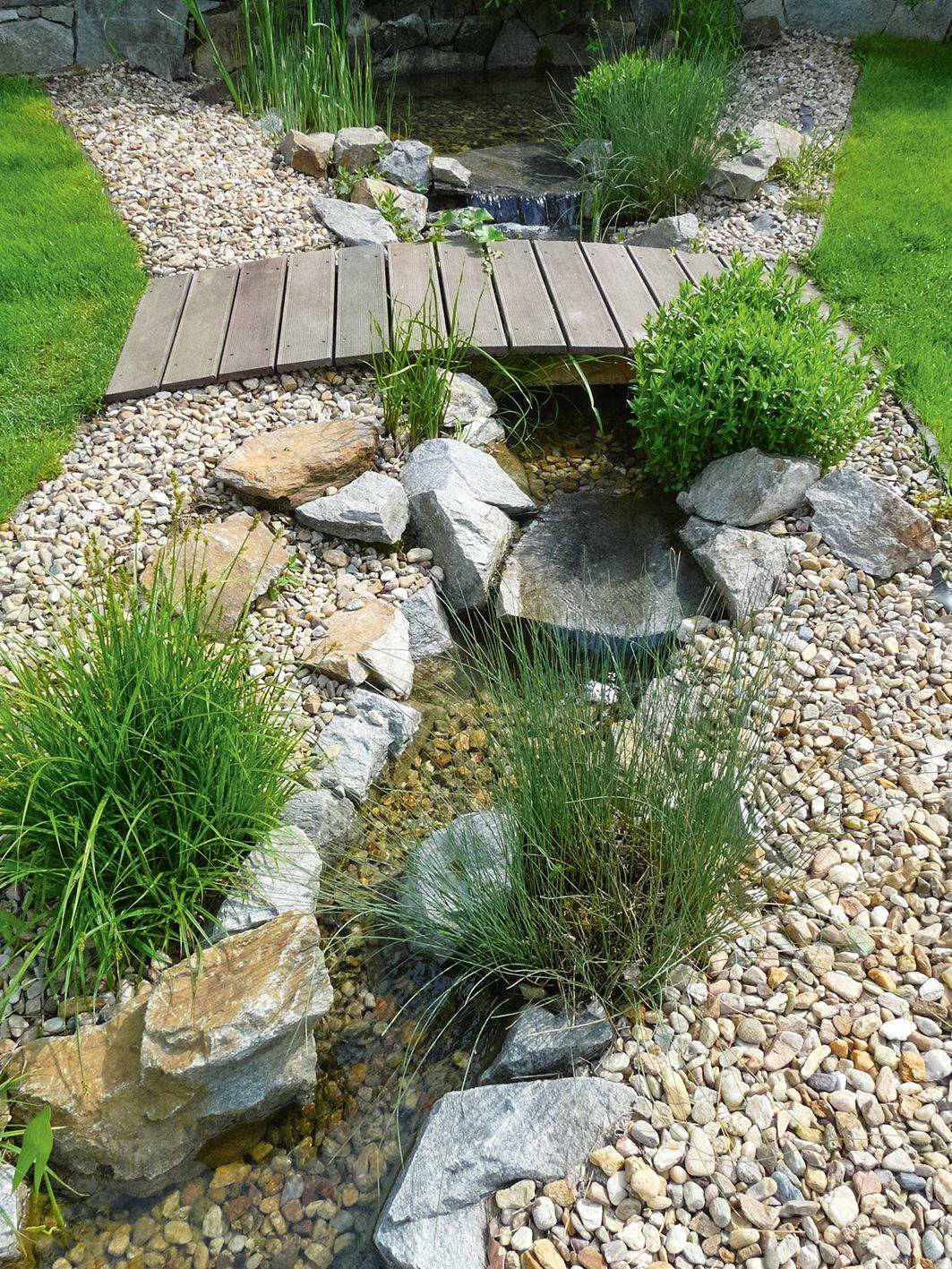 Potok v zahradě vytvoří překážku, kterou je vhodné využít pro umístění stylového mostu.