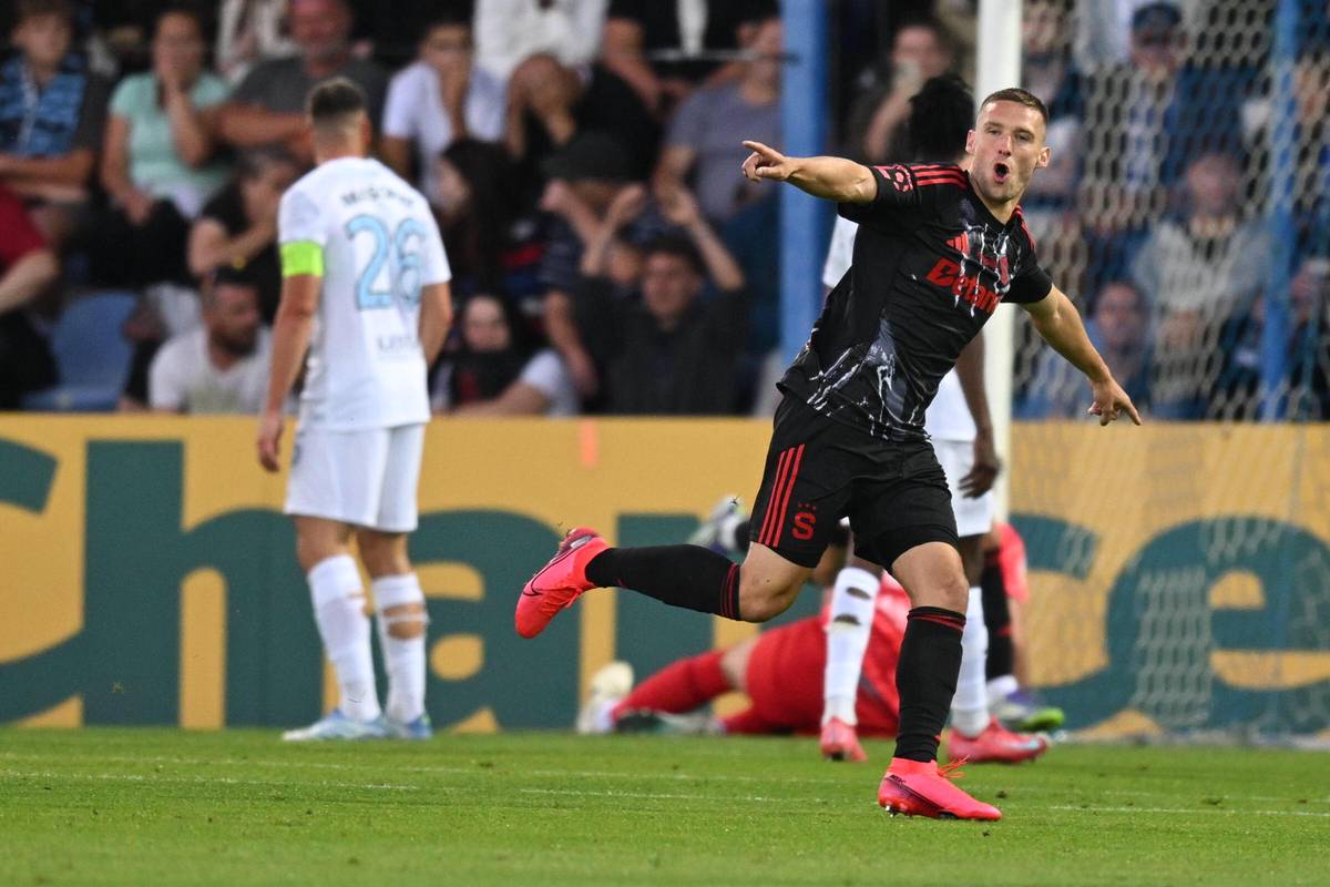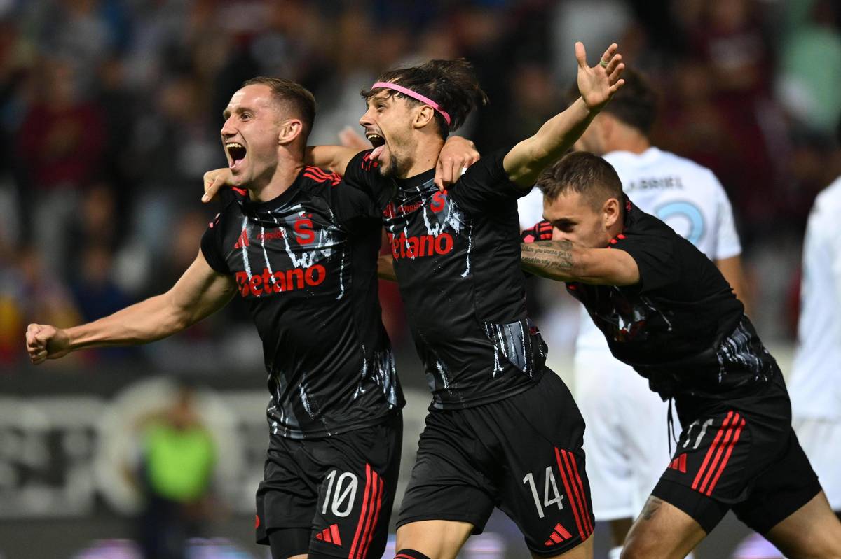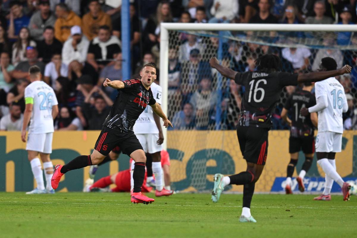 Utkání 5. kola Chance Ligy, FC Slovan Liberec - AC Sparta Praha, Veljko Birmančevič (uprostřed) slaví svůj gól na 2:0 pro hosty.