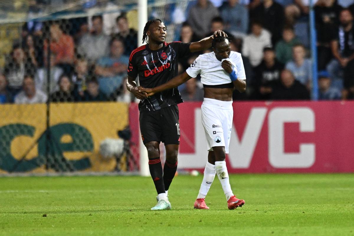 Utkání 5. kola první fotbalové ligy: Slovan Liberec - Sparta Praha, vyloučený Aziz Kayondo odchází s pláčem do kabin.