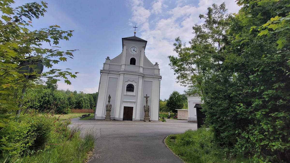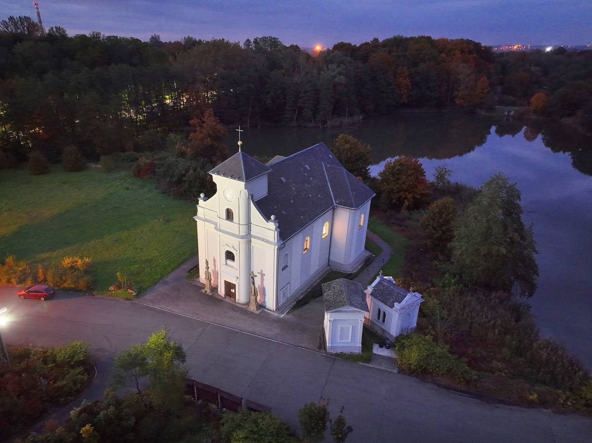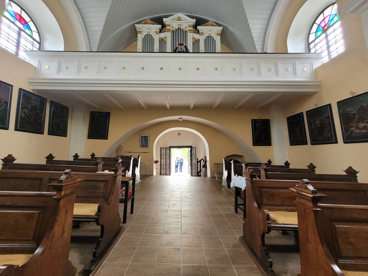 Také v interiéru kostela svatého Petra z Alkantary se dá poznat, jak nakloněná stavba je.