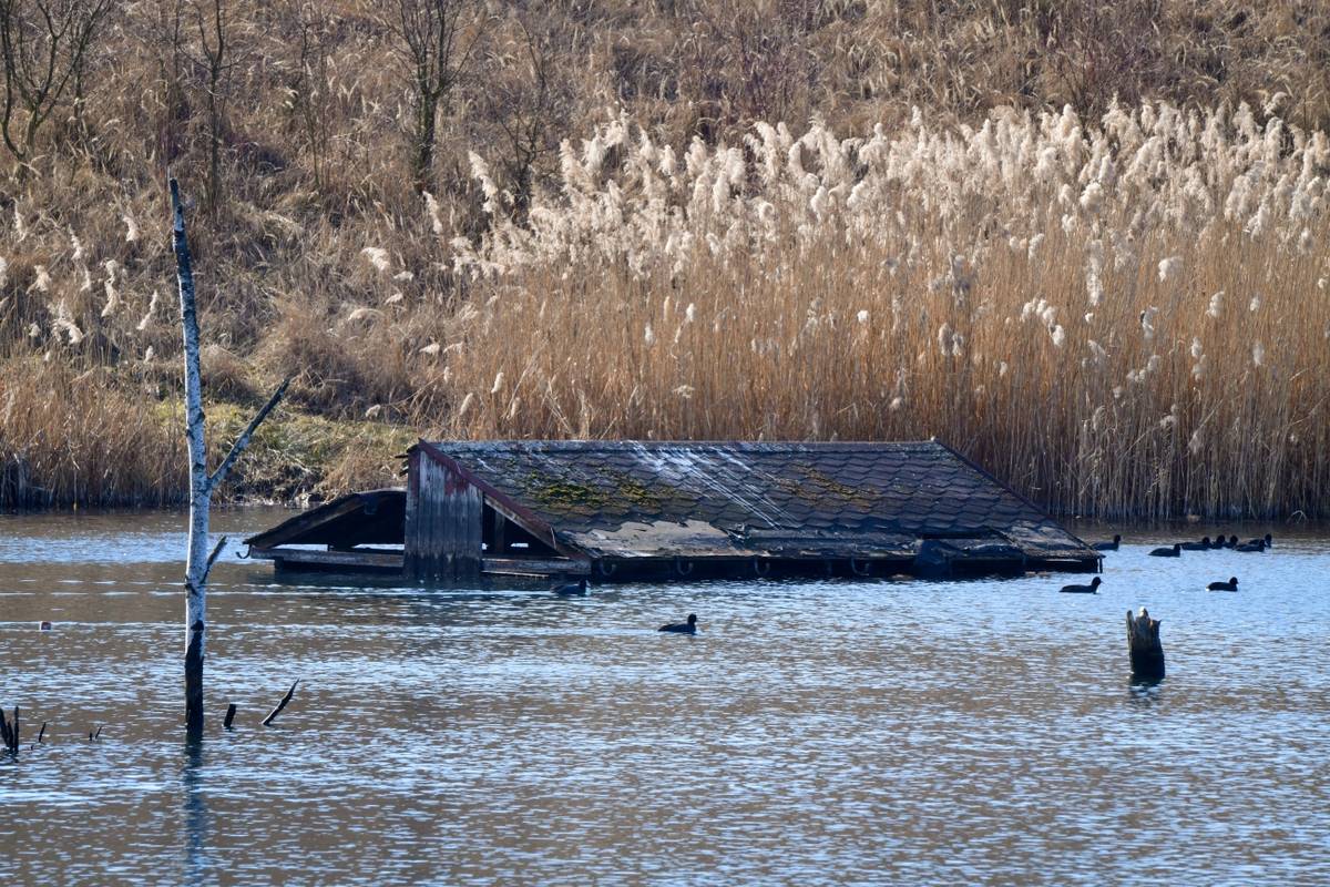 Nad vodní hladinu nádrže nedaleko karvinského moře stále vyčnívají zbytky domů, které tu stávaly. Poddolované území po čase zaplavila voda.