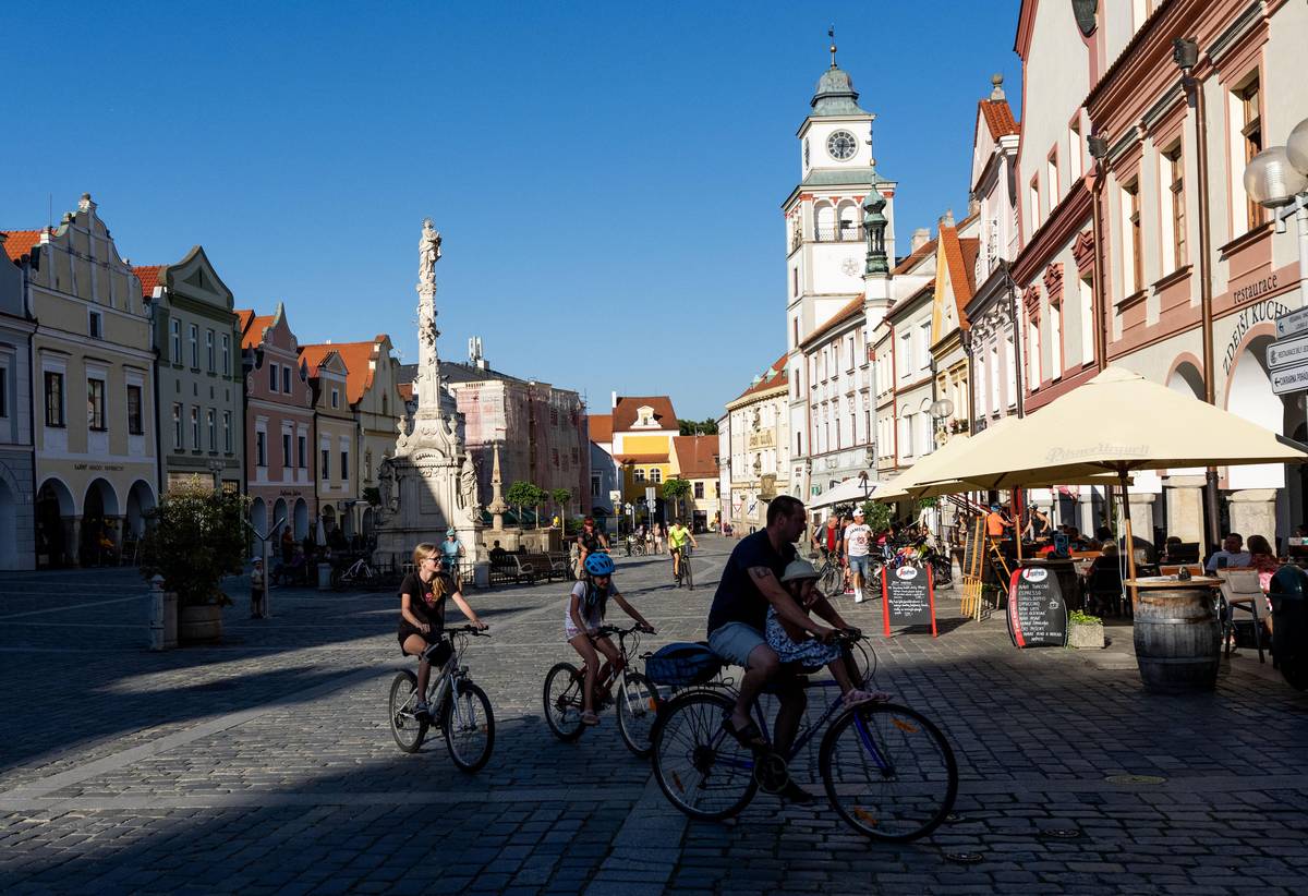 Restaurace na Masarykově náměstí v Třeboni bývají častým cílem cyklovýletů.