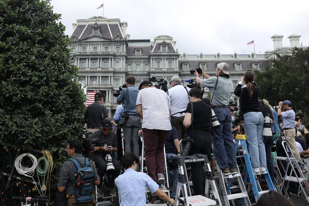 V okolí Bílého domu je také mnoho zahraničních novinářů.