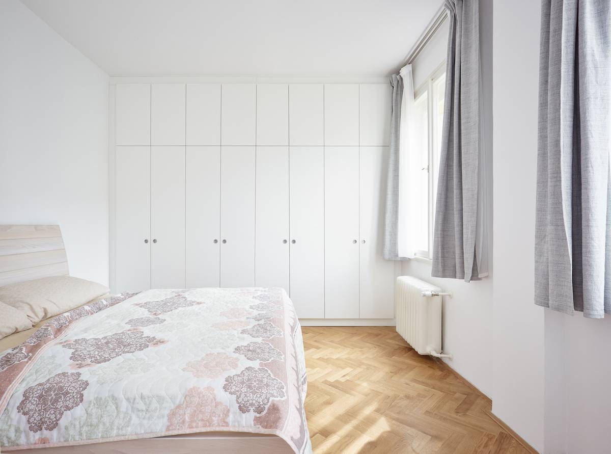 Dřevěné podlahy v celém bytě byly sjednoceny, parkety repasovány a doplněny.
