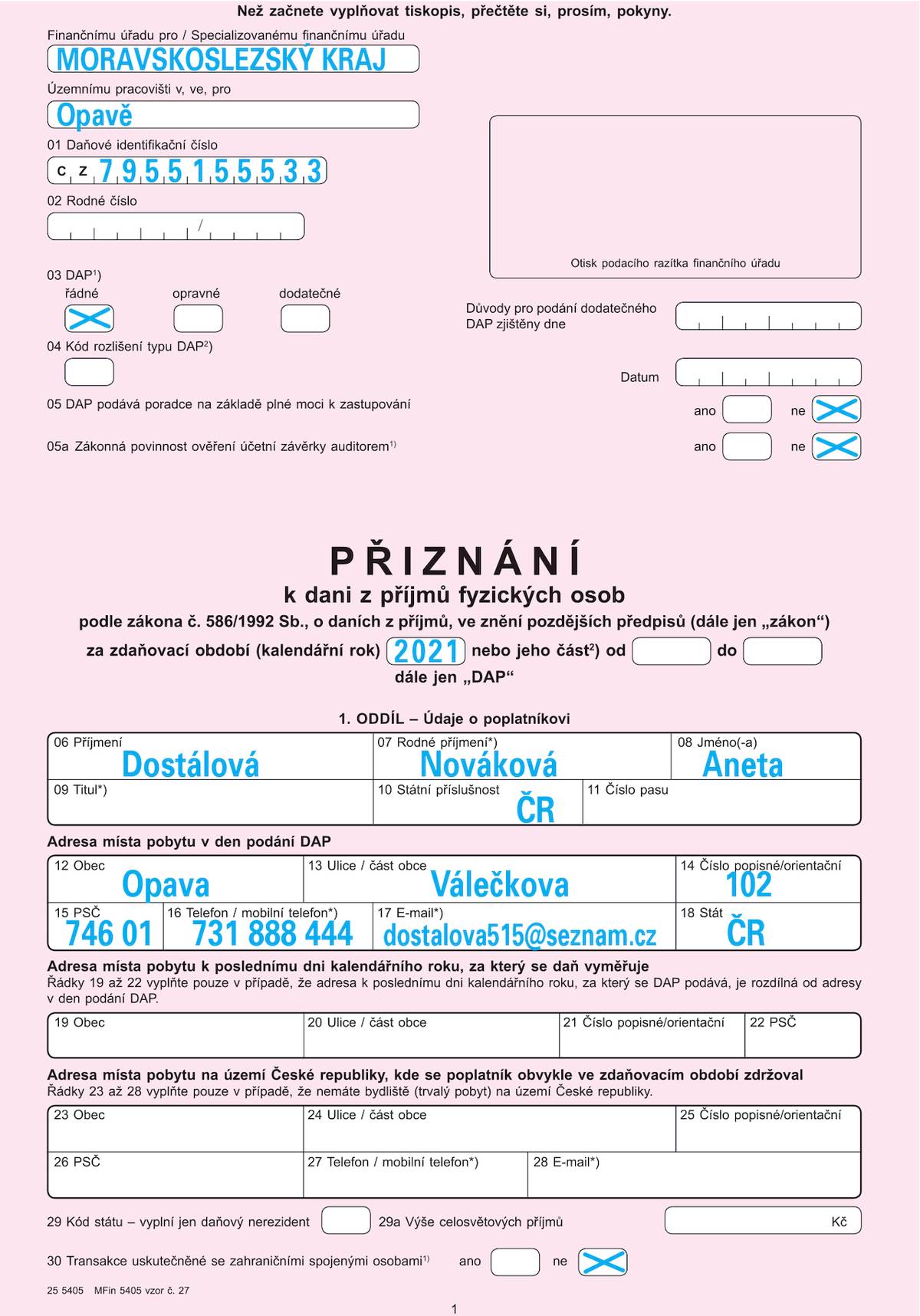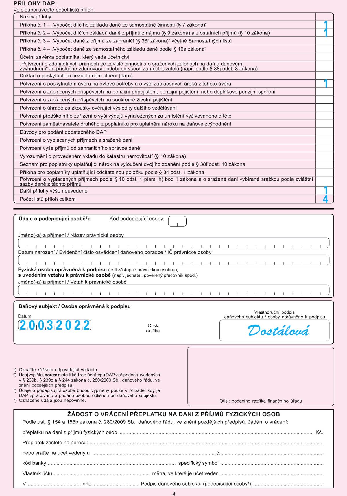 Přehledně: Jak vyplnit čtyřstránkové daňové přiznání