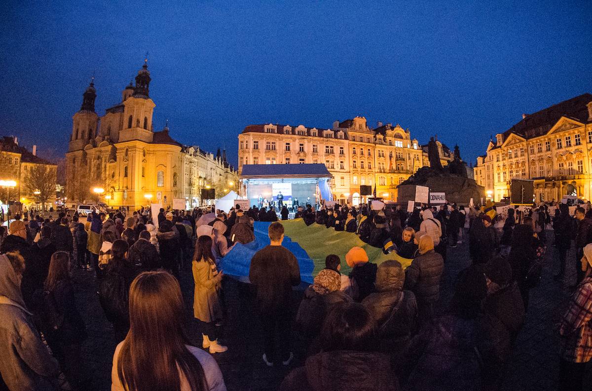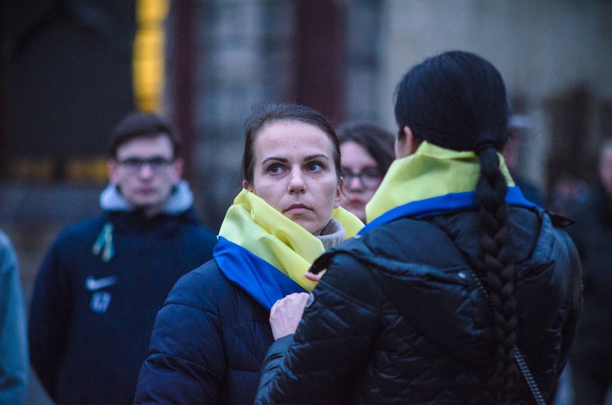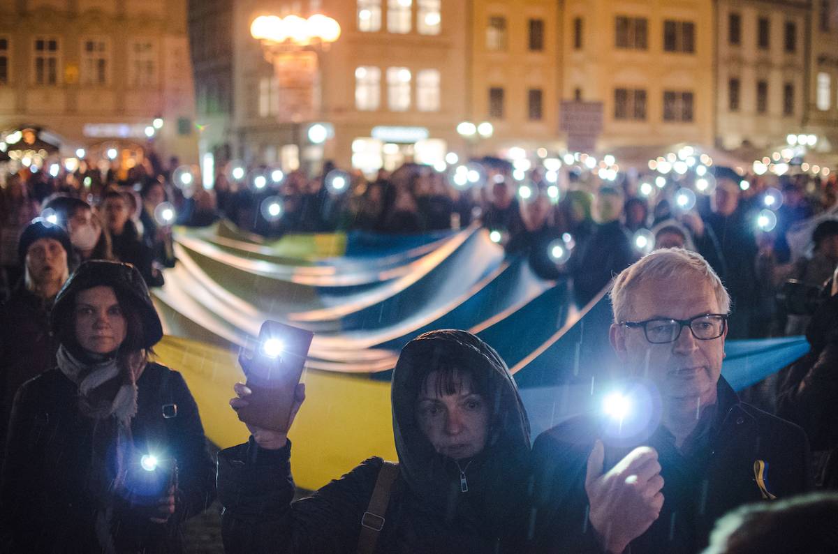 Na konci se zpívala ukrajinská hymna a lidé rozsvítili svoje mobilní telefony.