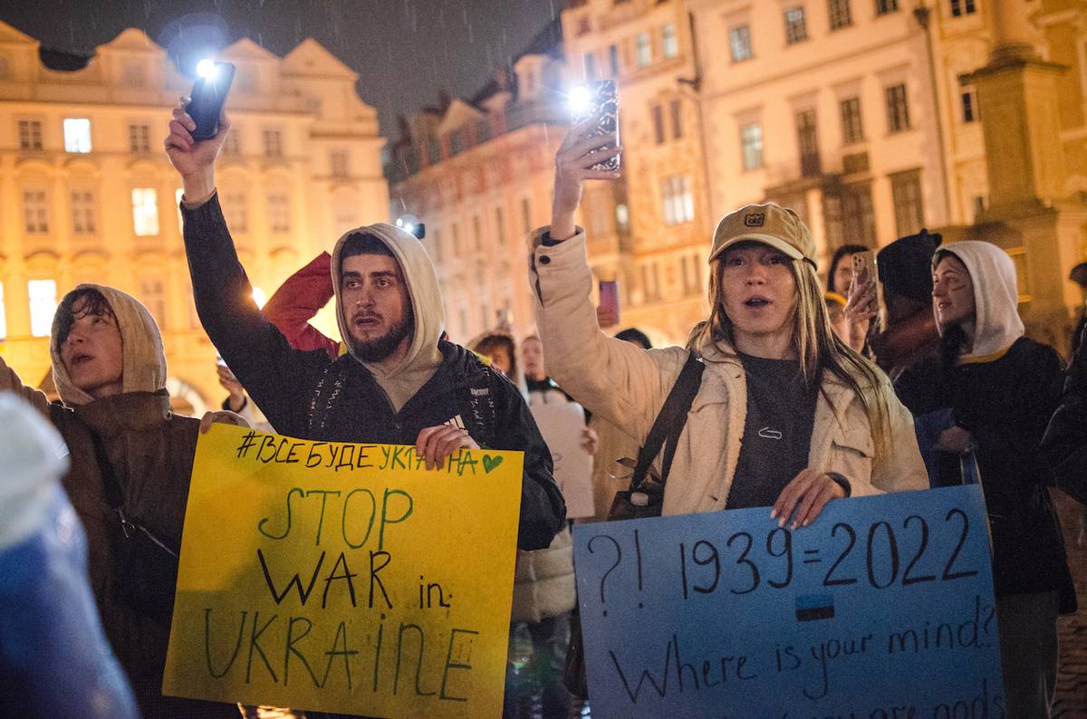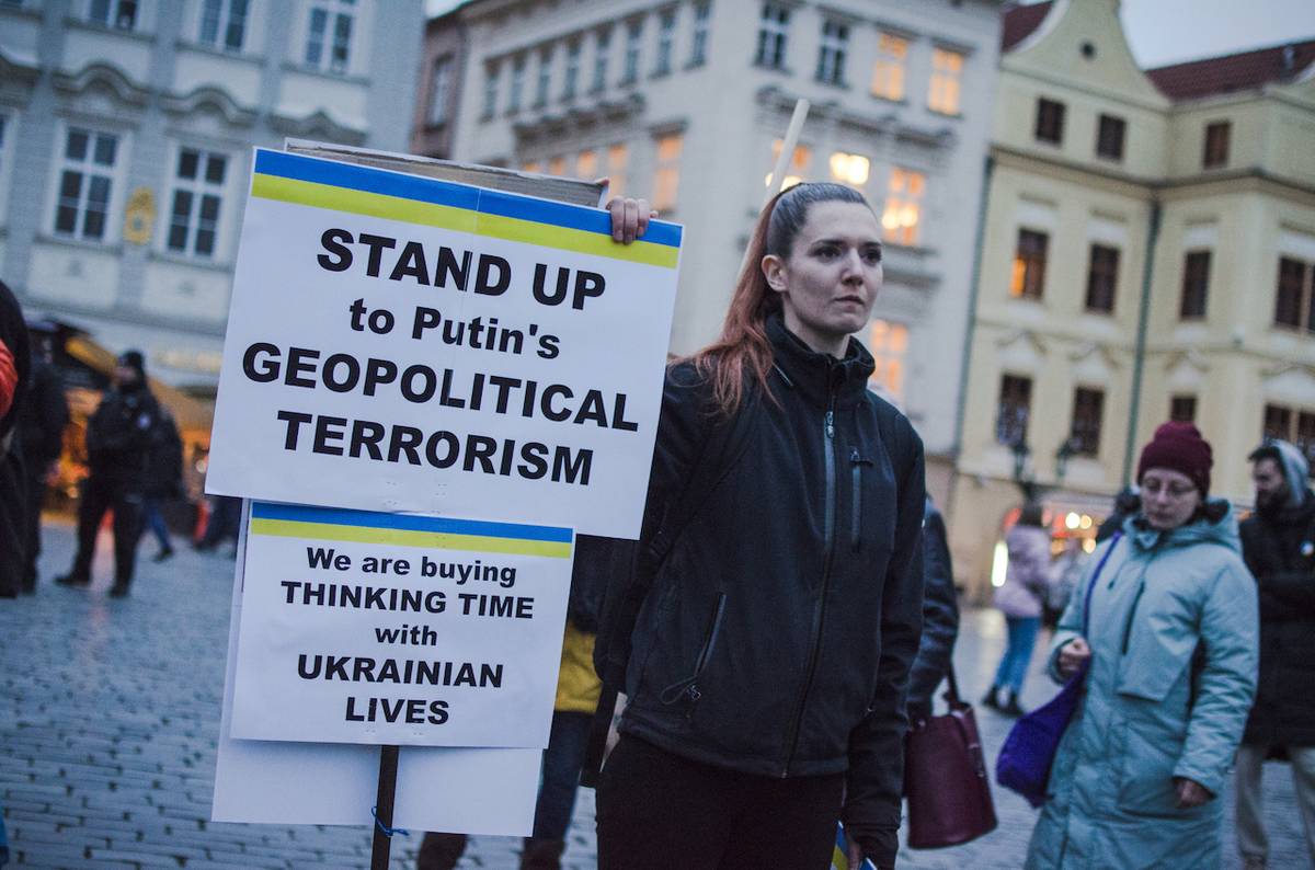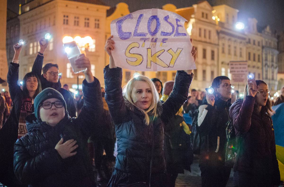 Protestující vyzývali k uzavření nebe nad Ukrajinou.