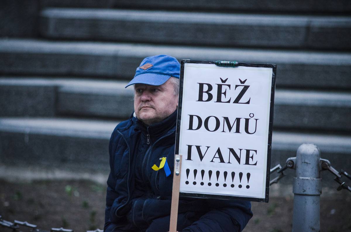 Demonstranti s nápisy přirovnávající dnešní situaci k počátku druhé světové války.