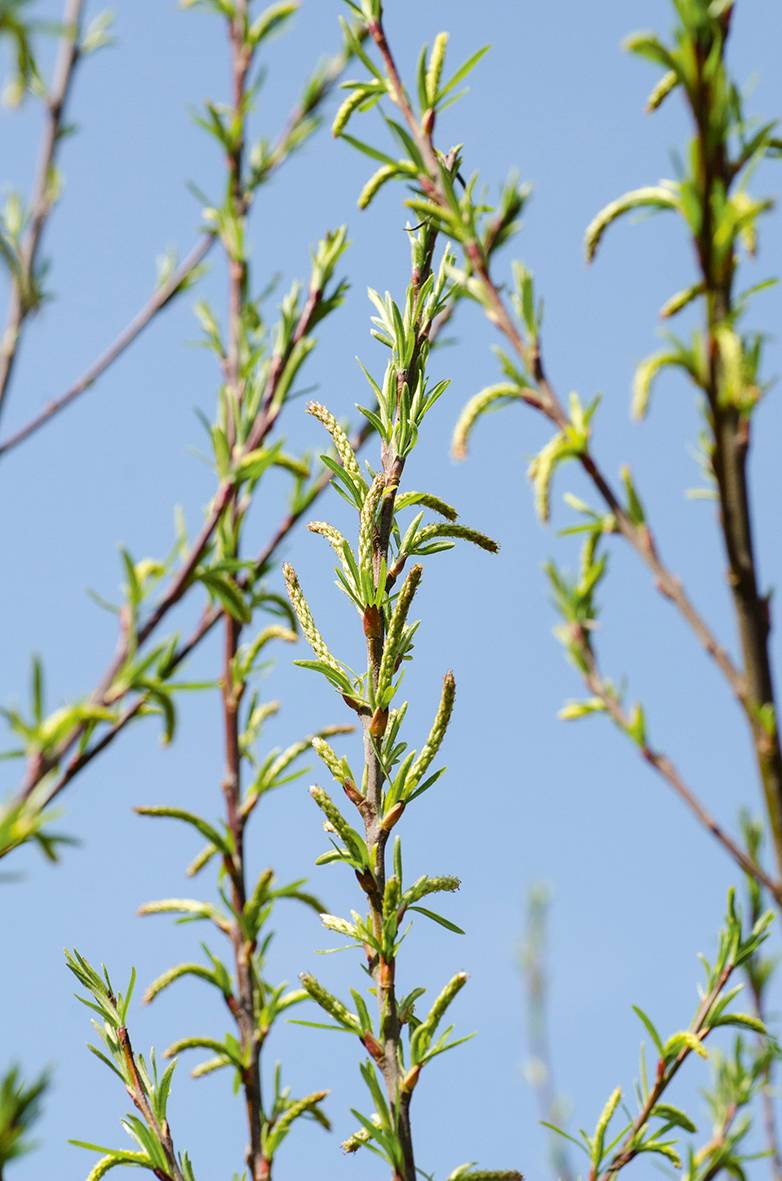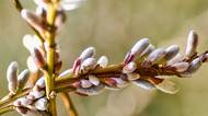 Napodobeniny housenčích tělíček se kroutí ve větvích vrby křehké (Salix euxina), která je v dospělosti malebným stromem s košatou korunou.
