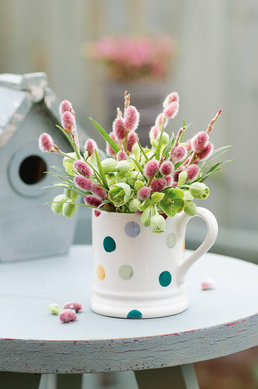Růžovo zelený sen v podání vrby štíhlopestíkaté Mount Aso a čemeřic si užijeme i doma ve váze. Samotné vrbové snítky se obejdou bez vody.
