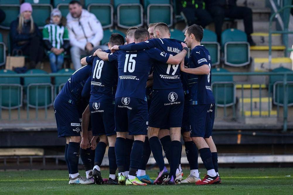 Fotbalisté Slovácka oslavují gól v utkání na Bohemians.