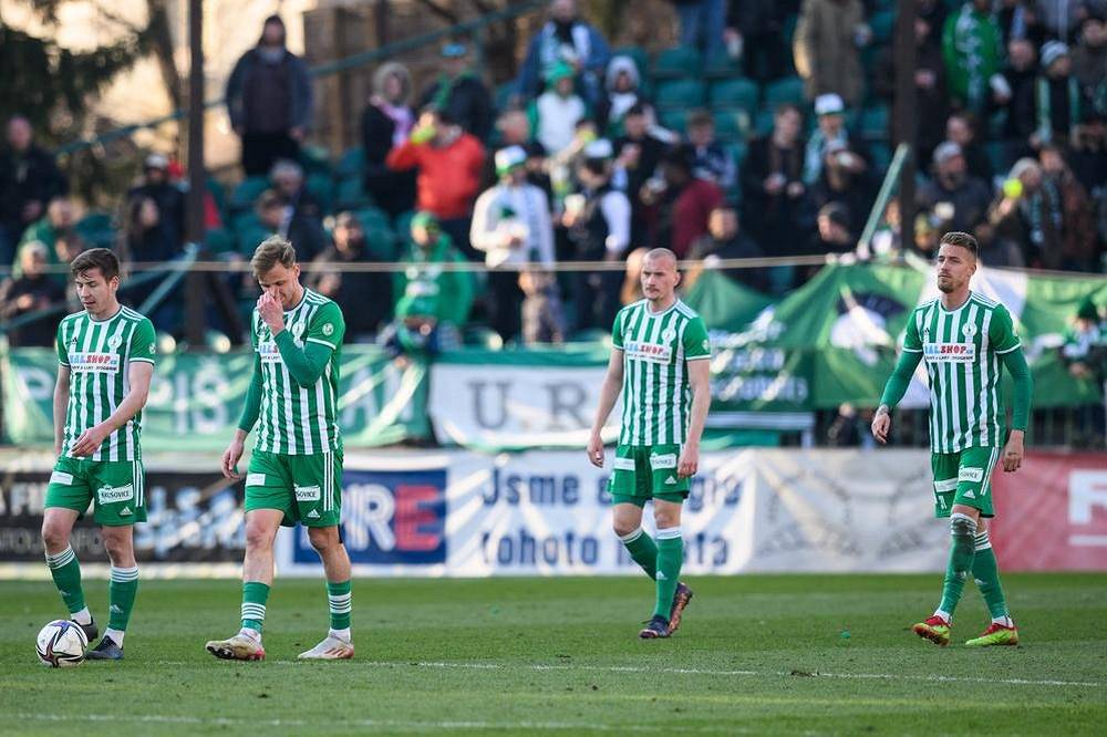 Fotbalisté Bohemians po druhém inkasovaném gólu.