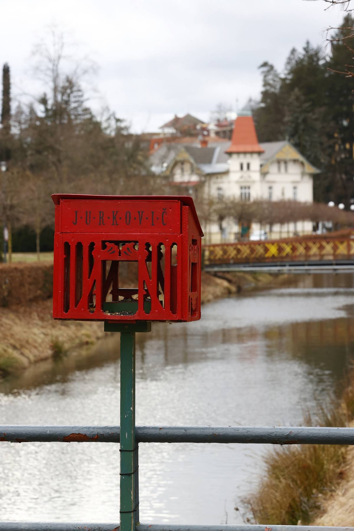 Na můstku přes řeku Šťávnici nepřehlédnete krmítko v Jurkovičově stylu.