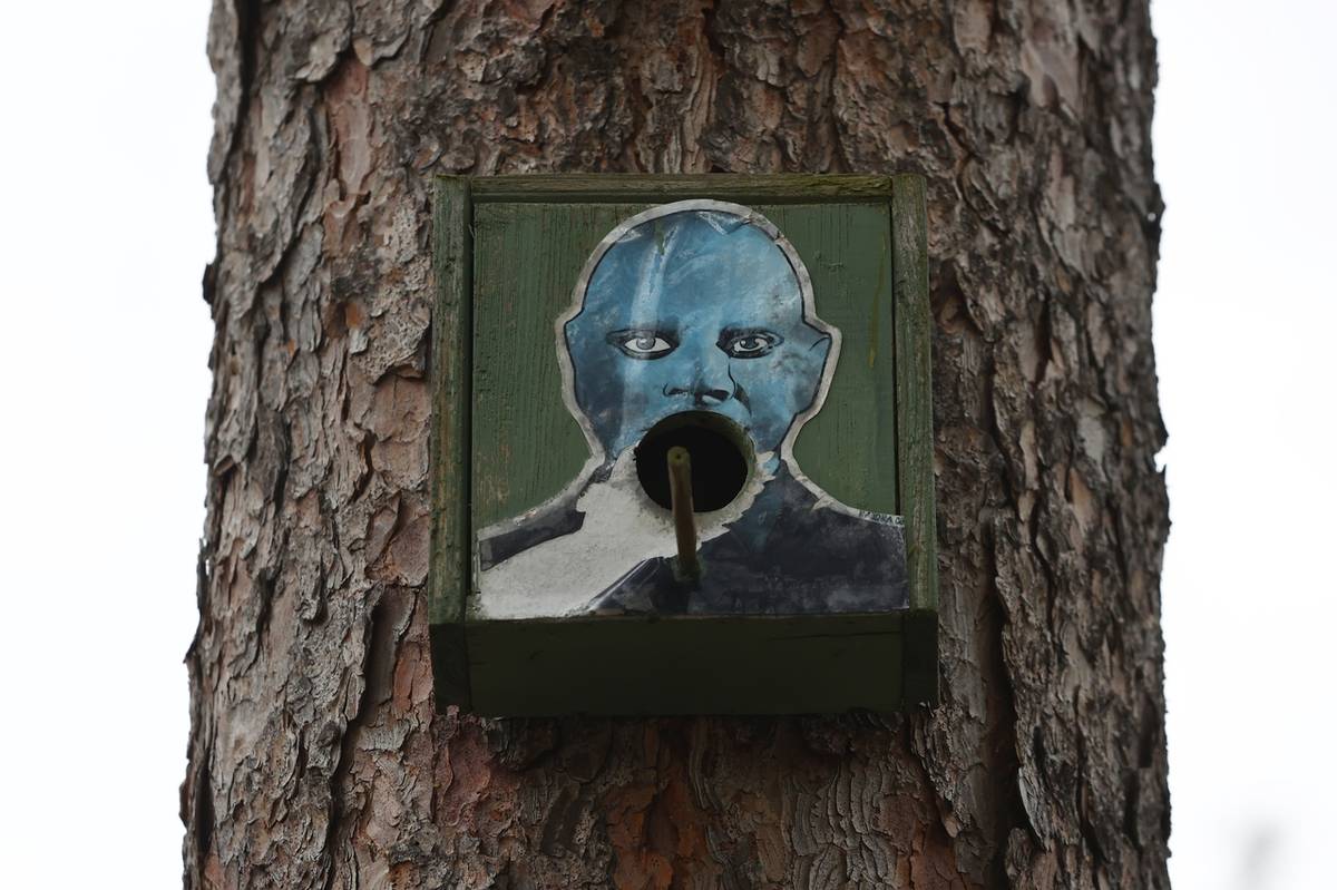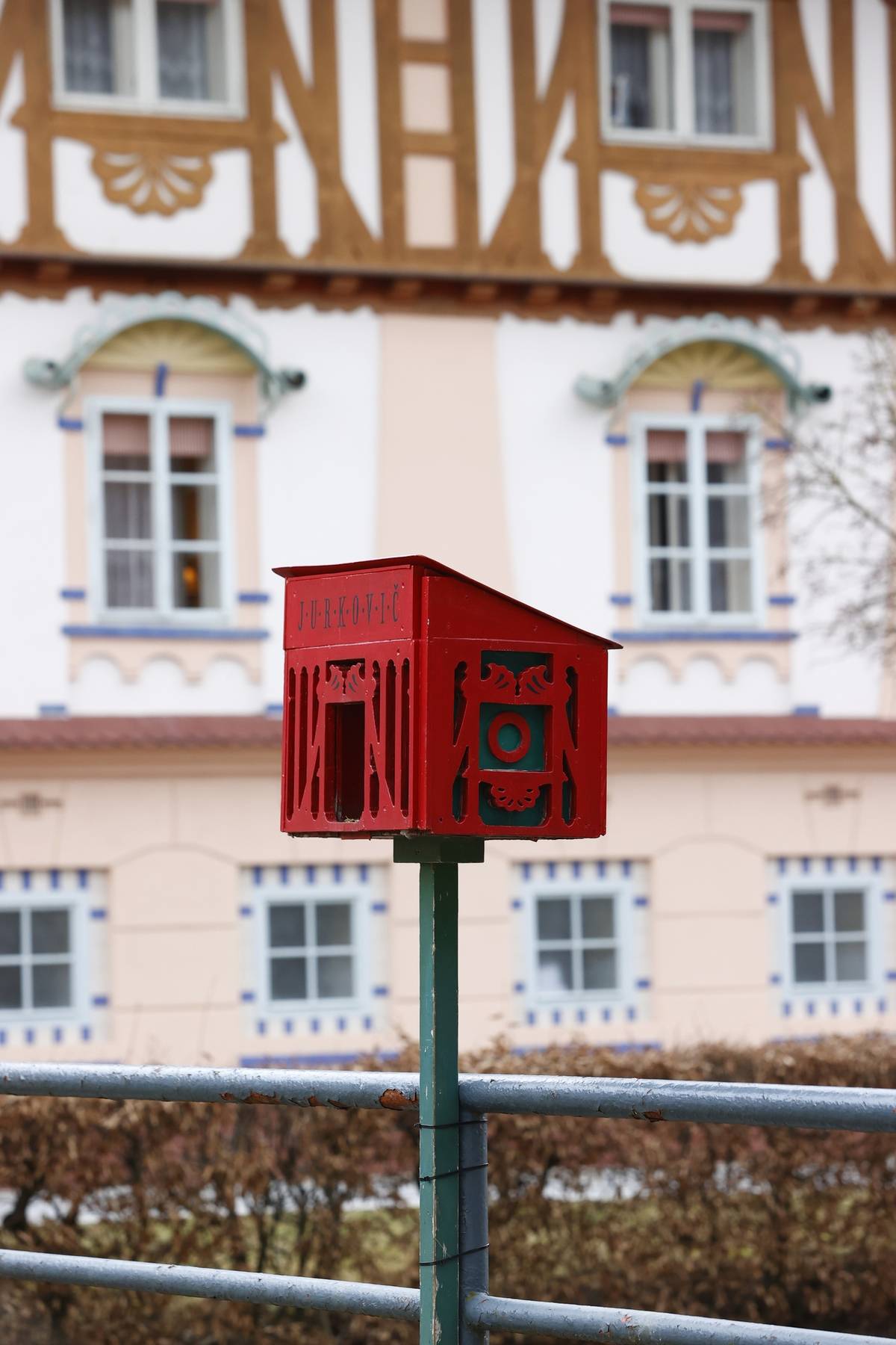 Na Ptačím náměstí je budka, k jejíž výrobě truhlář použil intarzii barevných dřev...