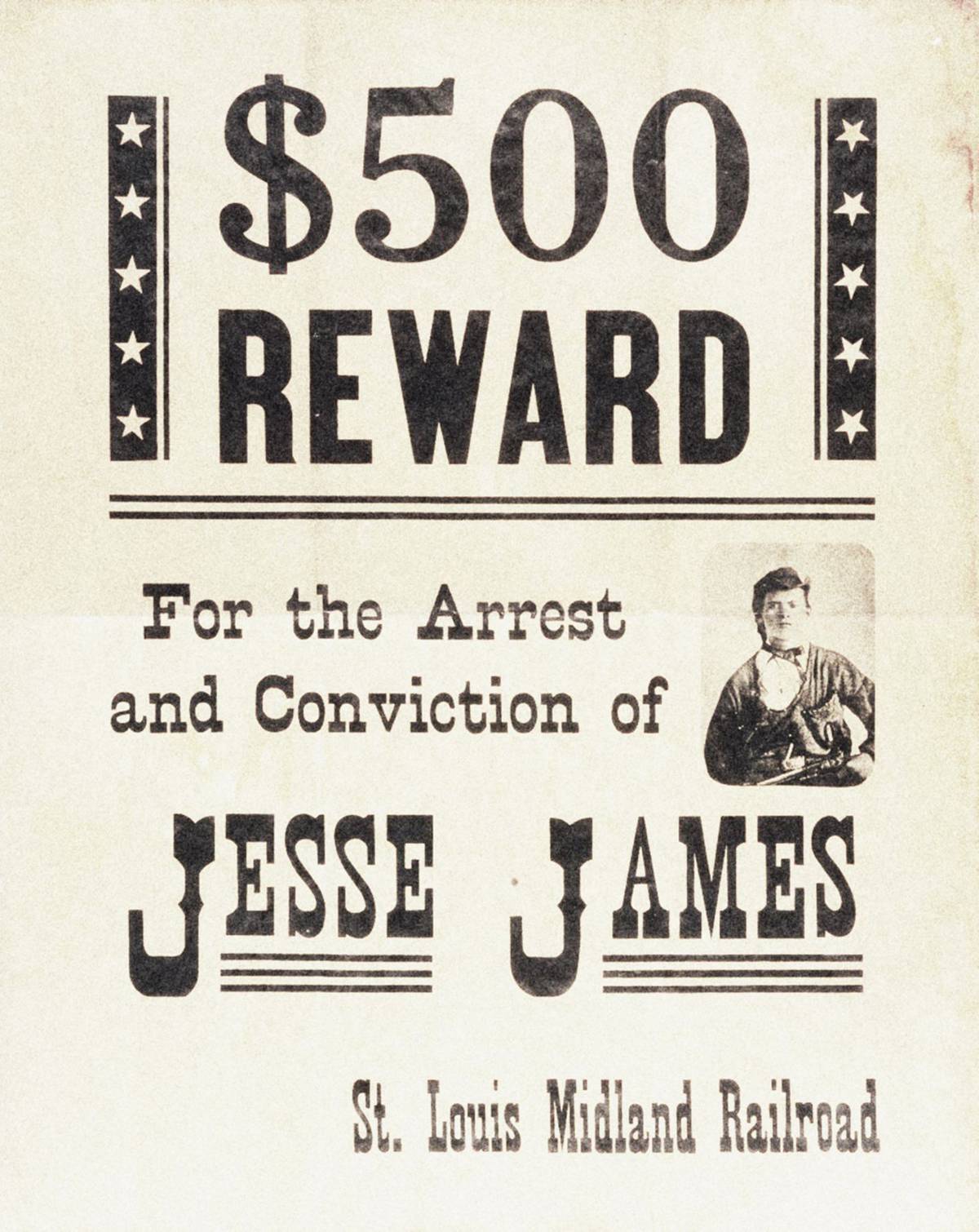 Už v roce 1870 vyhlásila tehdejší železniční společnost první odměnu 500 dolarů za dopadení Jesseho.