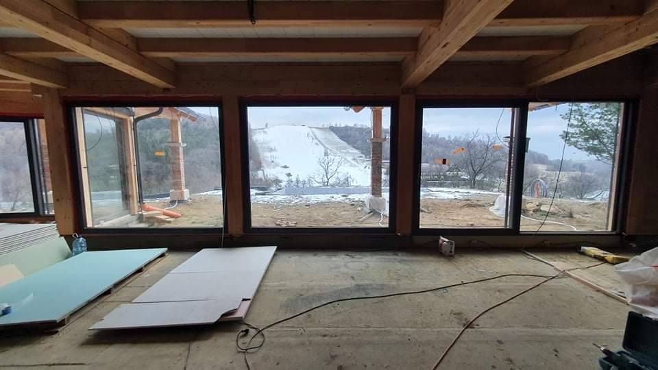 Výhled z nového Mynářova domu nabízí vrchol sjezdovky jeho skiareálu.