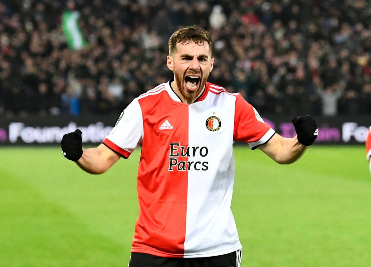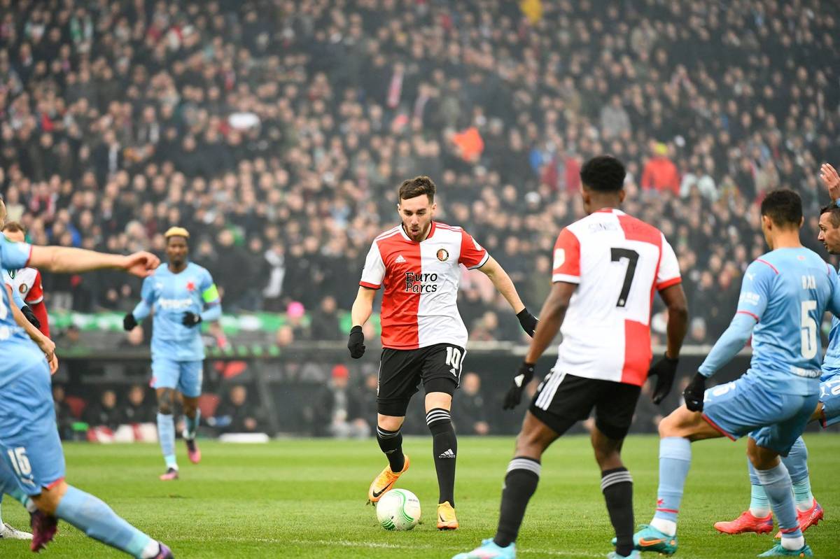 Orkun Kokcu v prvním čtvrtfinále Evropské konferenční ligy Feyenoord - Slavia