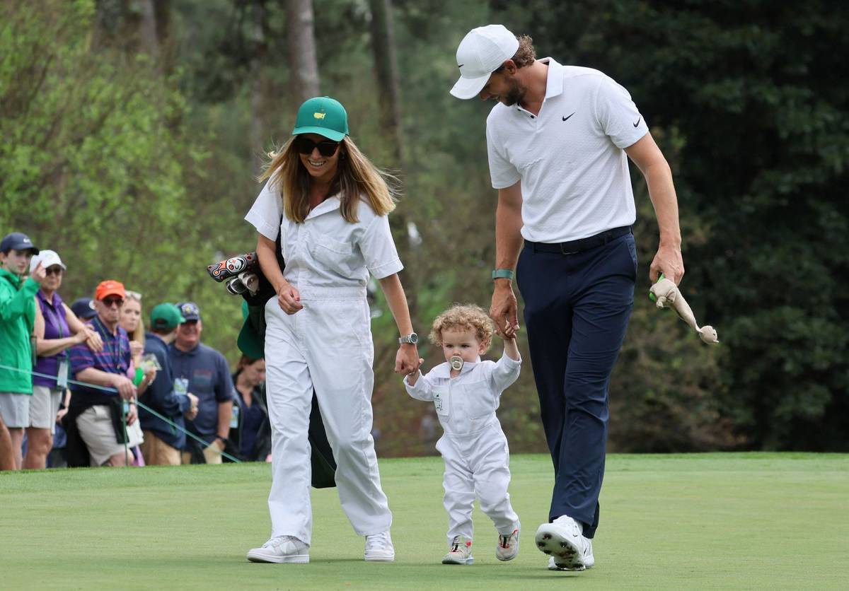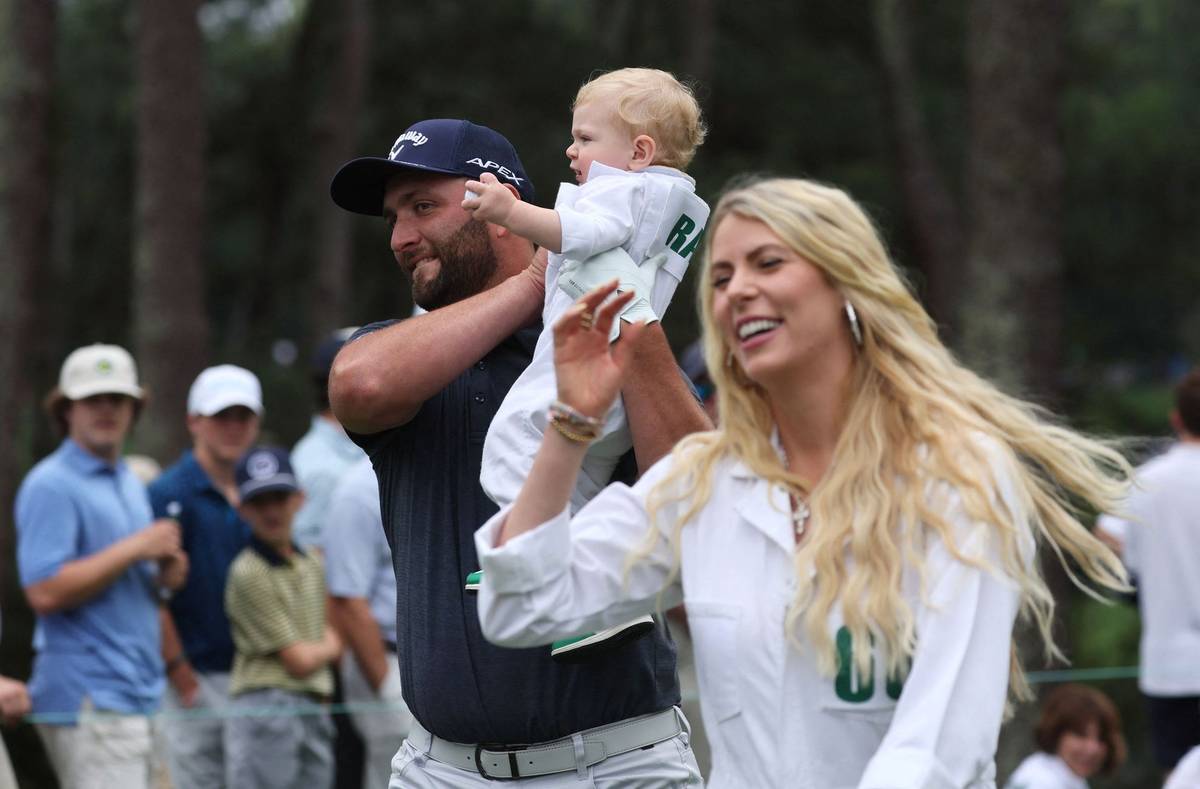 Synka má v Augustě i Harold Varner, tady je v náručí manželky Amandy.