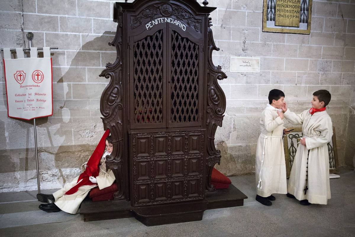 Příprava na procesí El Silencio v katedrále v Zamoře, kterého se za úplného ticha účastní více než dva tisíce kajícníků.