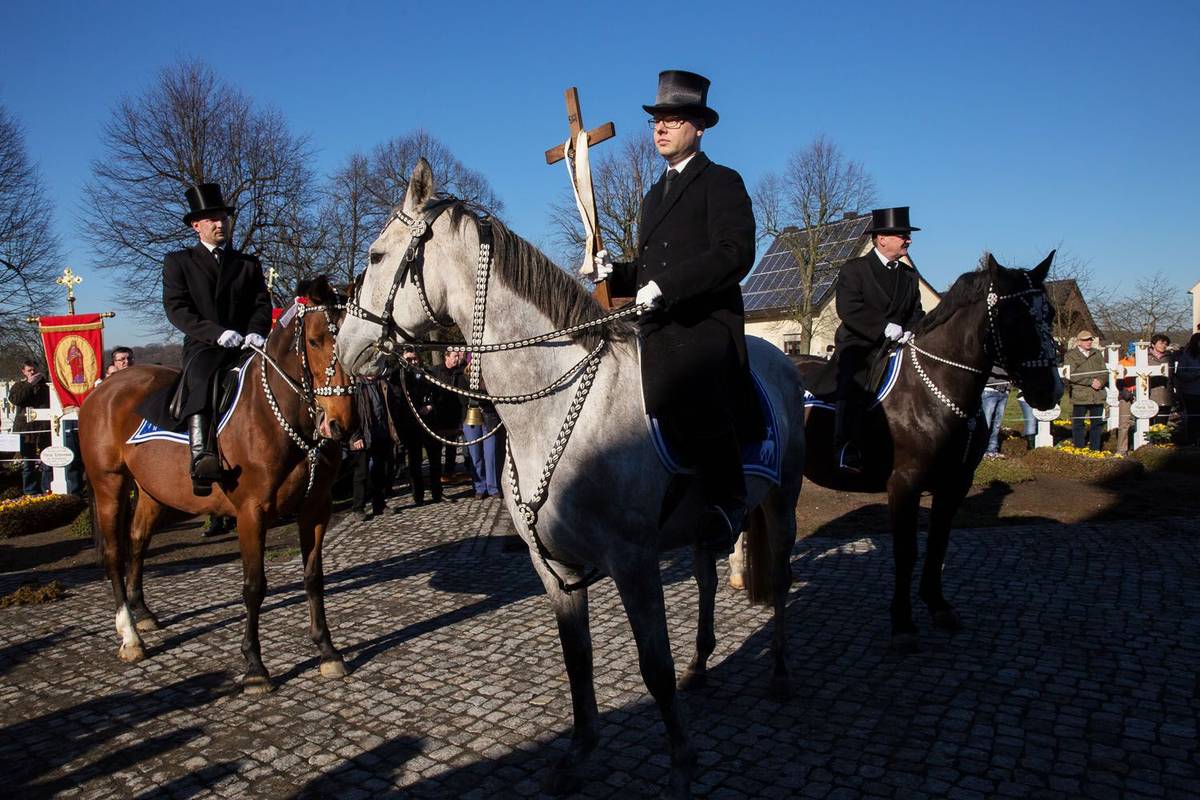 Procesí se účastní i několik stovek jezdců na koních. Oblečeni do fraků a cylindrů se jezdci se sejdou před kostelem, kde dostanou požehnání a vydají za zpěvu písní na jízdu mezi obcemi.