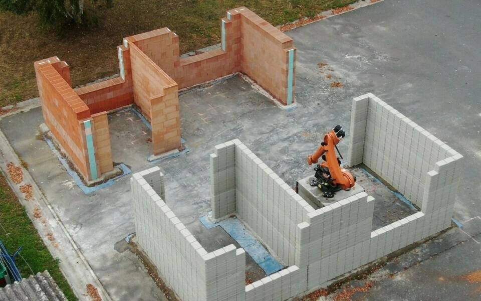 Zdící robot od KM Robotics, Wienerbergeru a IdeaSense.