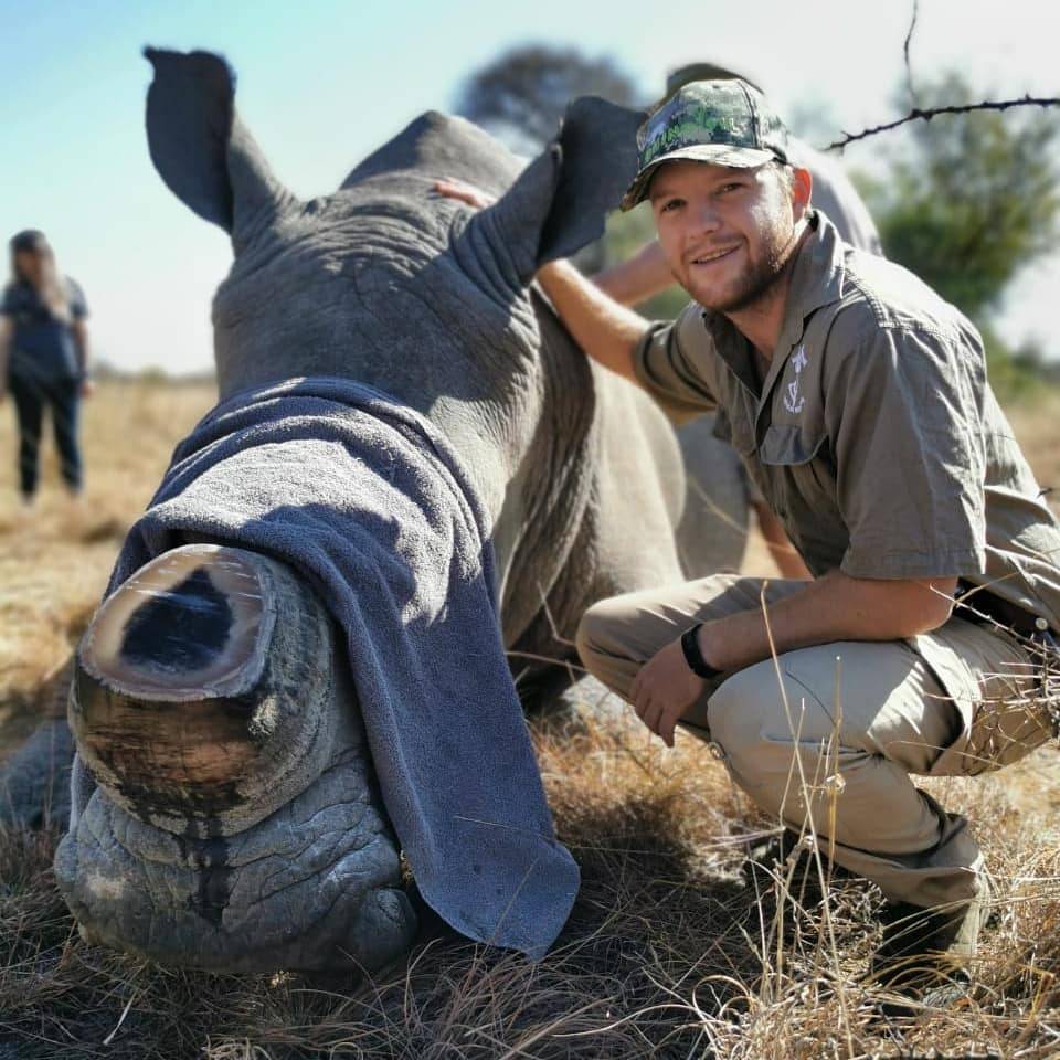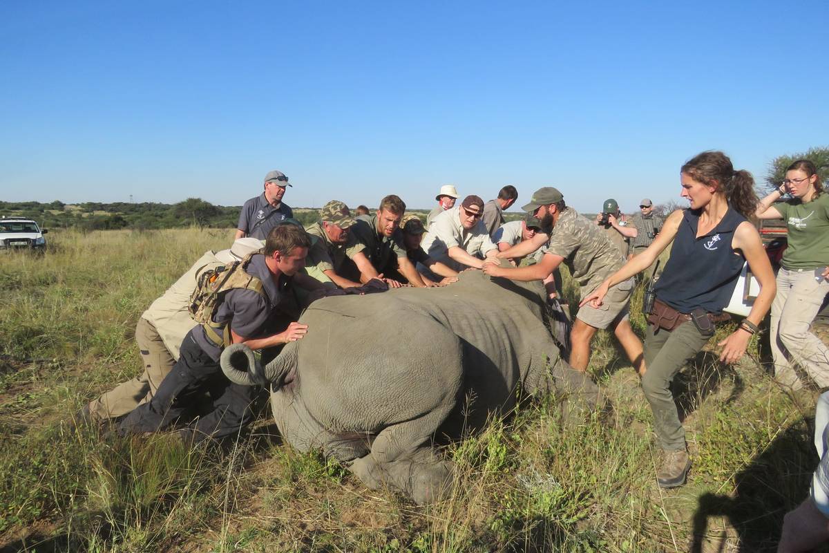 Záchrana nosorožce s odřezaným rohem po útoku pytláků.