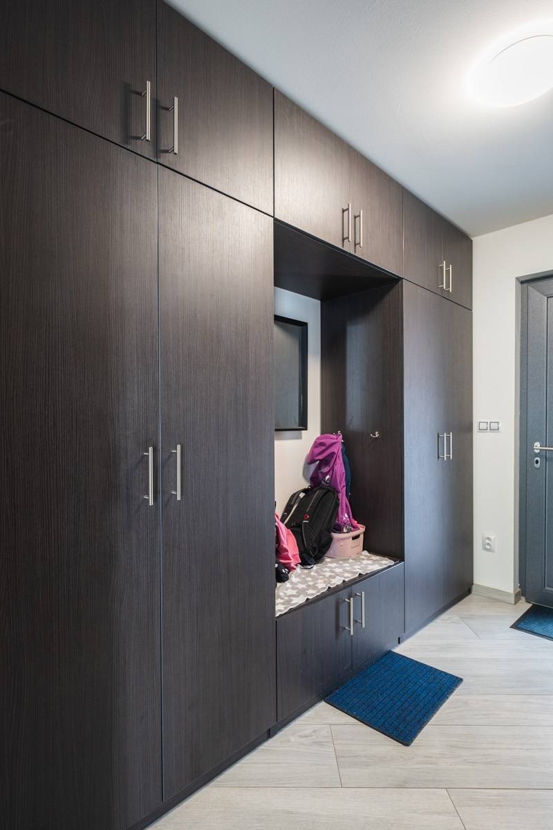 Úložných prostor v domě mají dostatek. V předsíni je velká šatní skříň, na chodbě šatna a v technické místnosti spousta regálů.