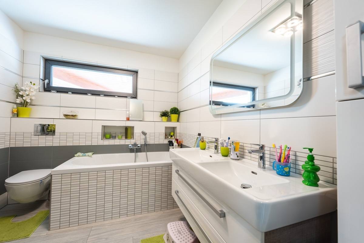V rodinném domě mají navržené dvě koupelny – jednu dámskou a jednu pánskou. A protože mají dvě dcery, dámská koupelna je o něco větší.