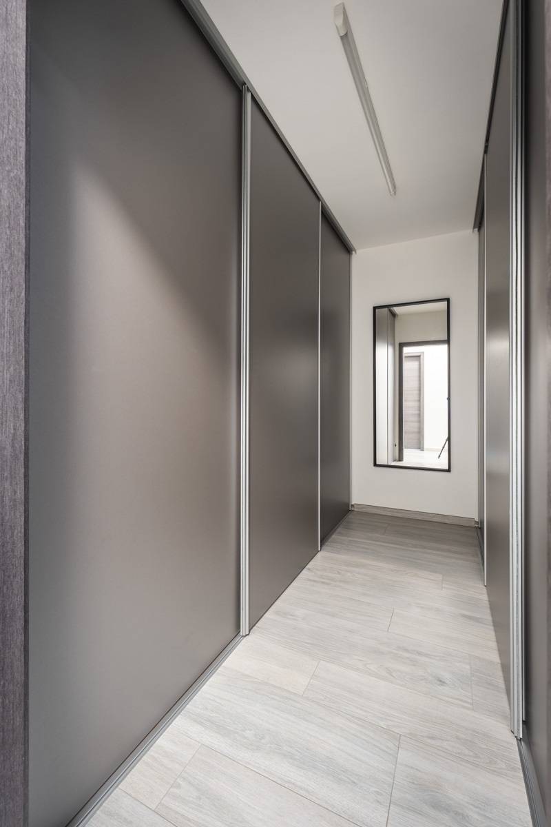 Původně byla v projektu průchozí šatna z ložnice, majitelé si ji udělali odděleně. Chodí do ní přímo z chodby, nejsou tam dveře – je otevřená.