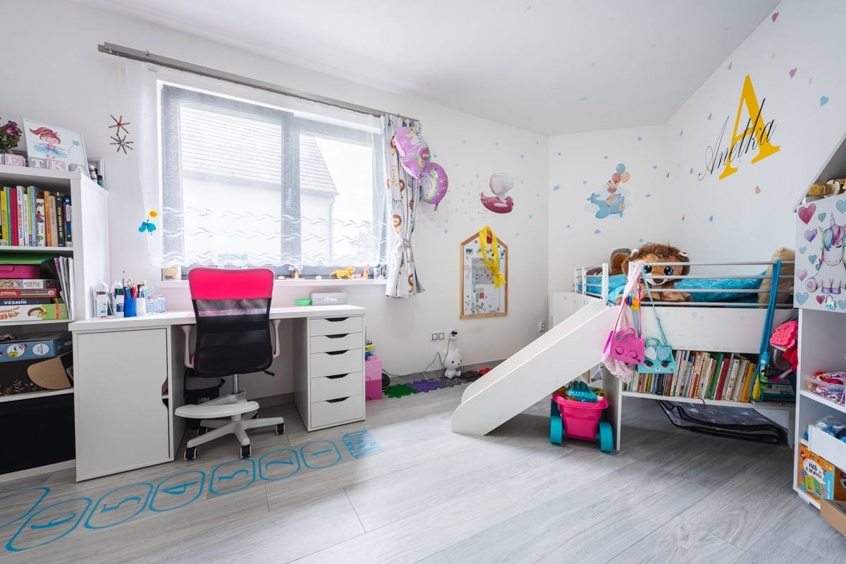 V domě jsou navržené dva dětské pokoje a protože jsou jejich dcerky zatím malé, v jednom pokoji spí a v druhém si jen hrají.