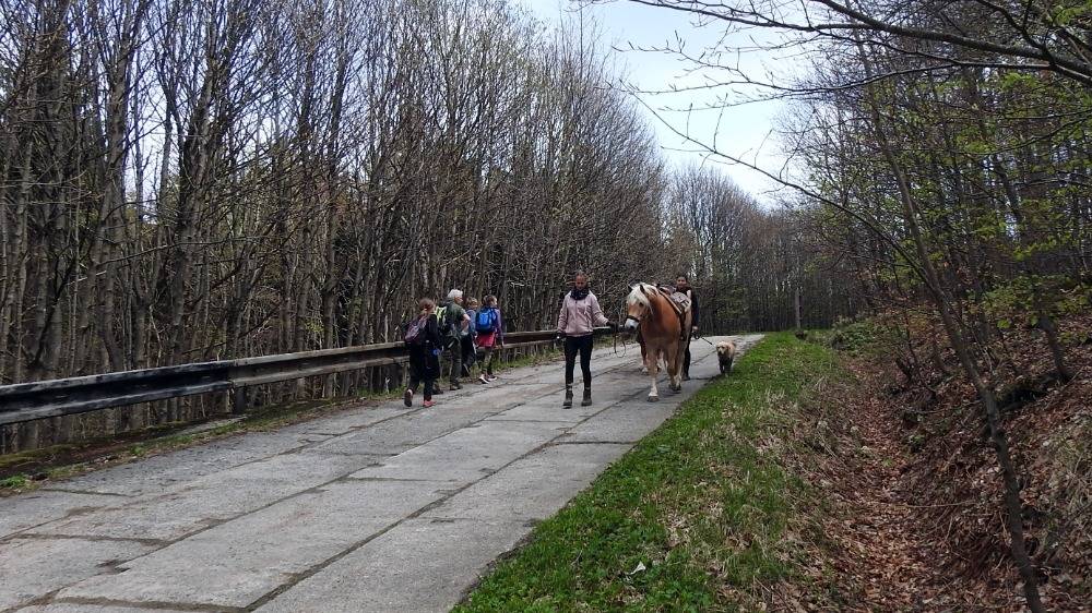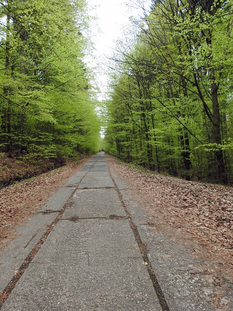 Předlouhá cesta po panelech na vrchol vede svěží bučinou.
