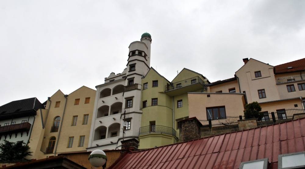 Zadní trakt Mydlářovského domu s neobvyklou věžičkou