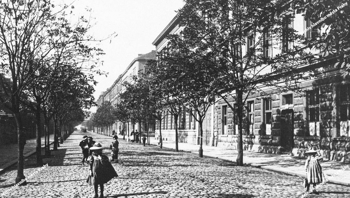 Pohled do Pernerovy ulice v Karlíně. Rok 1910.