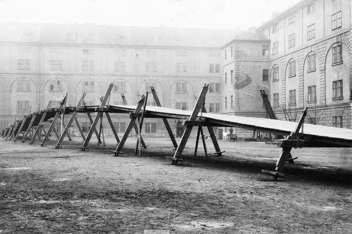 Snímky z historie Kasáren Karlín. Nedatováno.