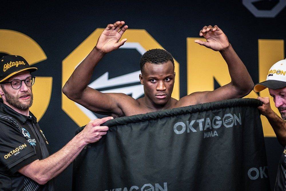 Denilson Oliveira a Christian Eckerlin během vážení před turnajem OKTAGON 33.