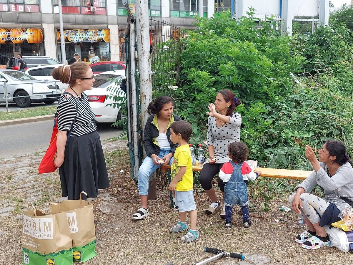 Do městečka chodí dobrovolníci s jídlem pro uprchlíky.